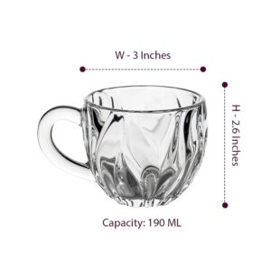 Glass World Premium Petal Graved Glass Cup Set for Tea, Coffee, Milk, Cappuccino