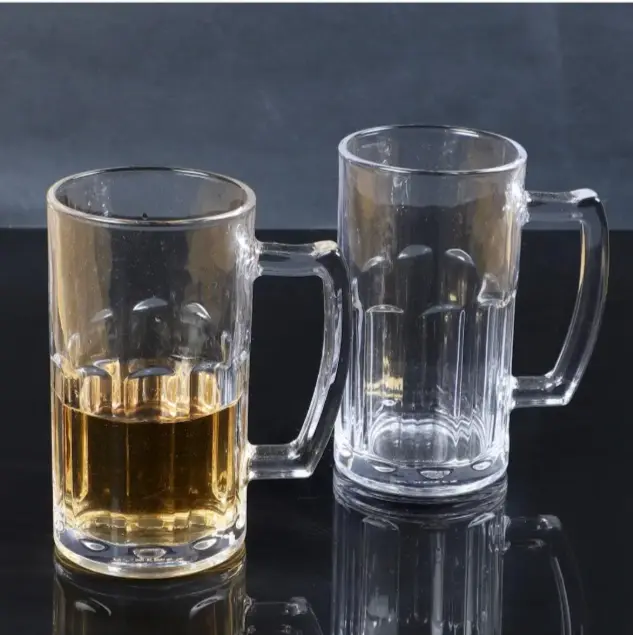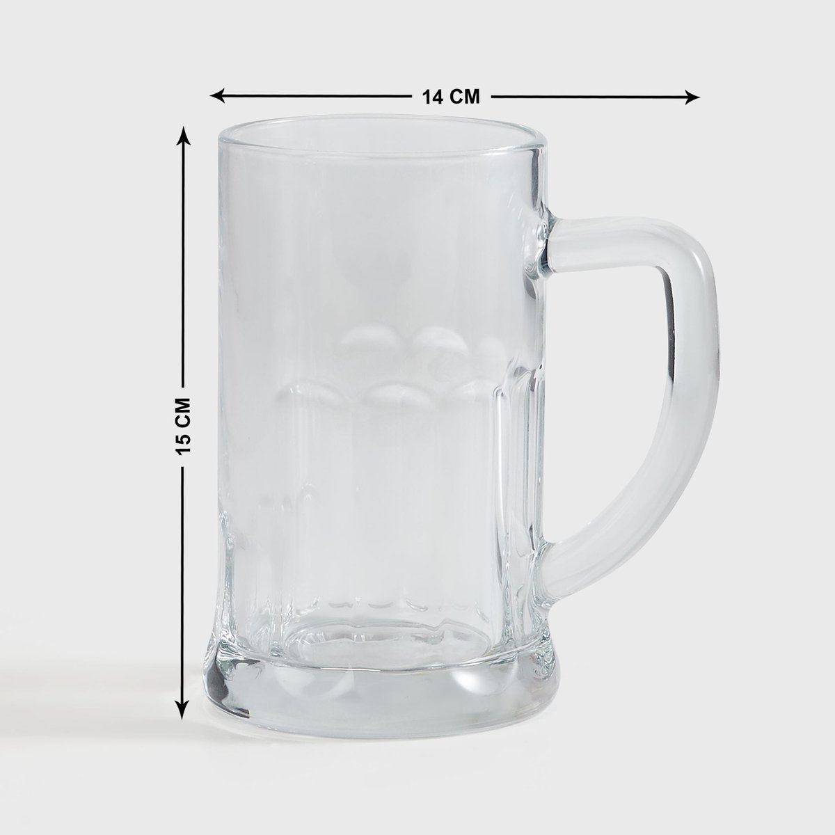 GlassWorld Premium Cutting 430ml Beer Mugs With Handle Clear Heavy Base Beer Glasses